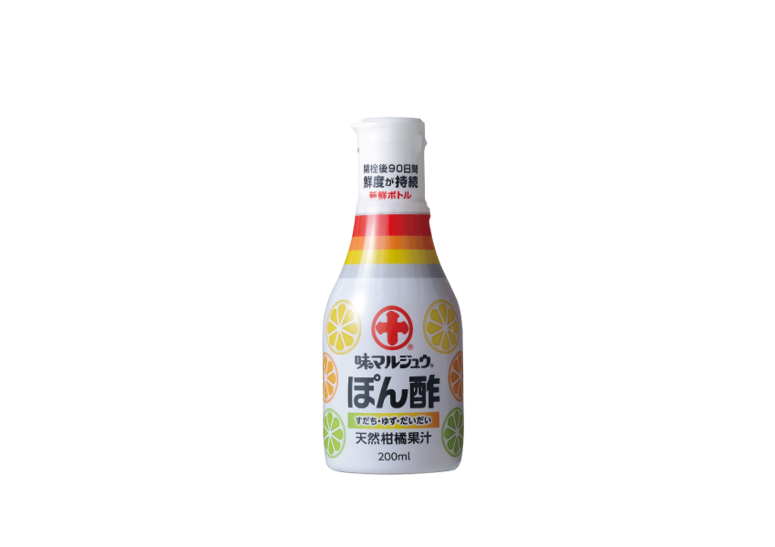 味マルジュウをベースに「すだち・ゆず・だいだい」の天然柑橘果汁をふんだんに使用した、味付けぼん酢です。